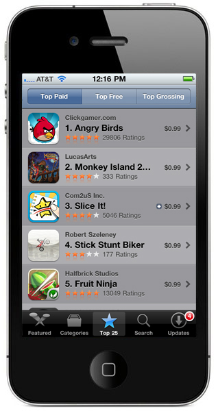 Damn! We nearly made it to the top spot on Apple’s Top 25 Paid Apps list this week! Still, ranking number 2 just under Angry Birds is an AMAZING accomplishment for the team given that this is our second iPhone game ever! Congratulations to everyone involved in reaching this remarkable milestone!